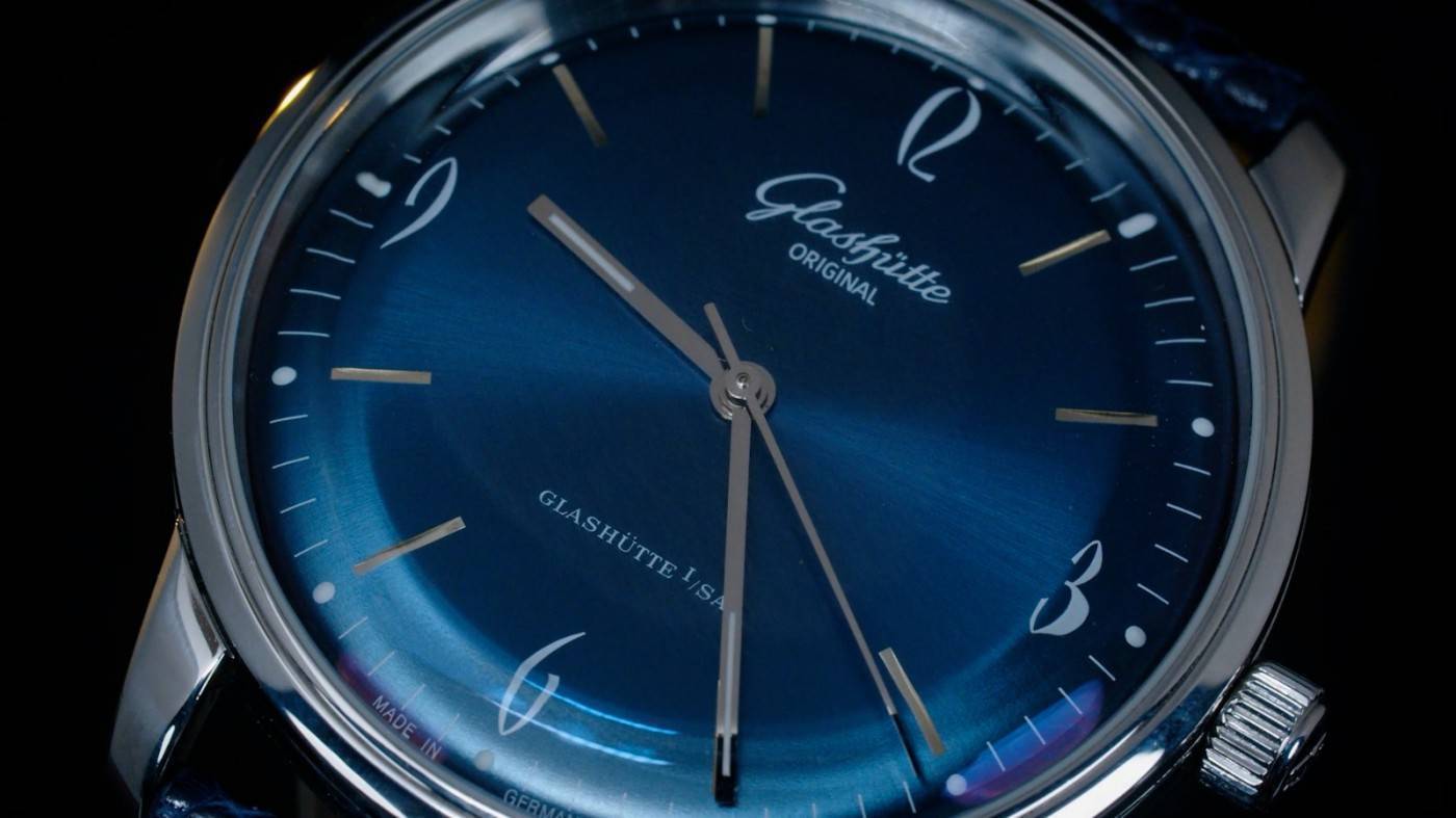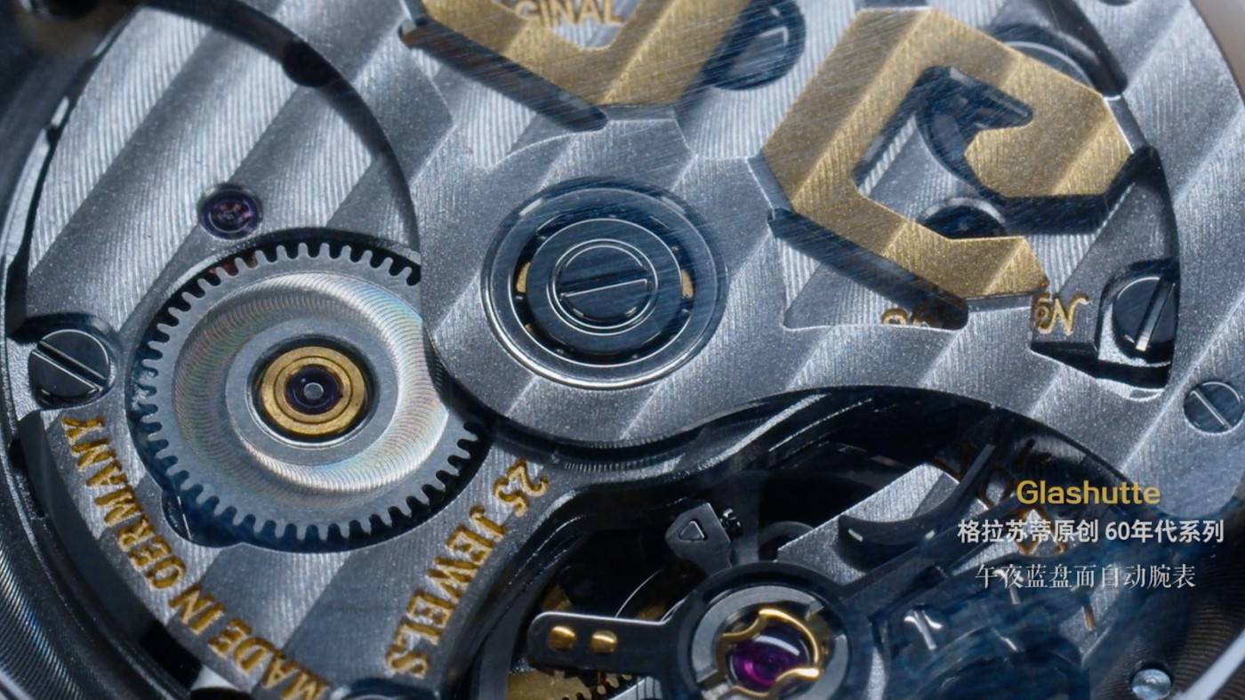 于是2007年,格拉苏蒂推出了一个全新的系列,就叫六零年代腕表。而我手上这枚9年前的午夜蓝,也是整个系列中,我个人觉得最好看的一枚。39毫米表径,大三针9.4毫米的厚度,用现代的眼光来看,这才是对60年代最好的致敬。就像当年的珠光漆盘面一样,为了呈现出更好的盘面视觉效果,这枚午夜蓝做了40多道工艺的电镀涂层,让整枚腕表的这抹湛蓝色更加特别。