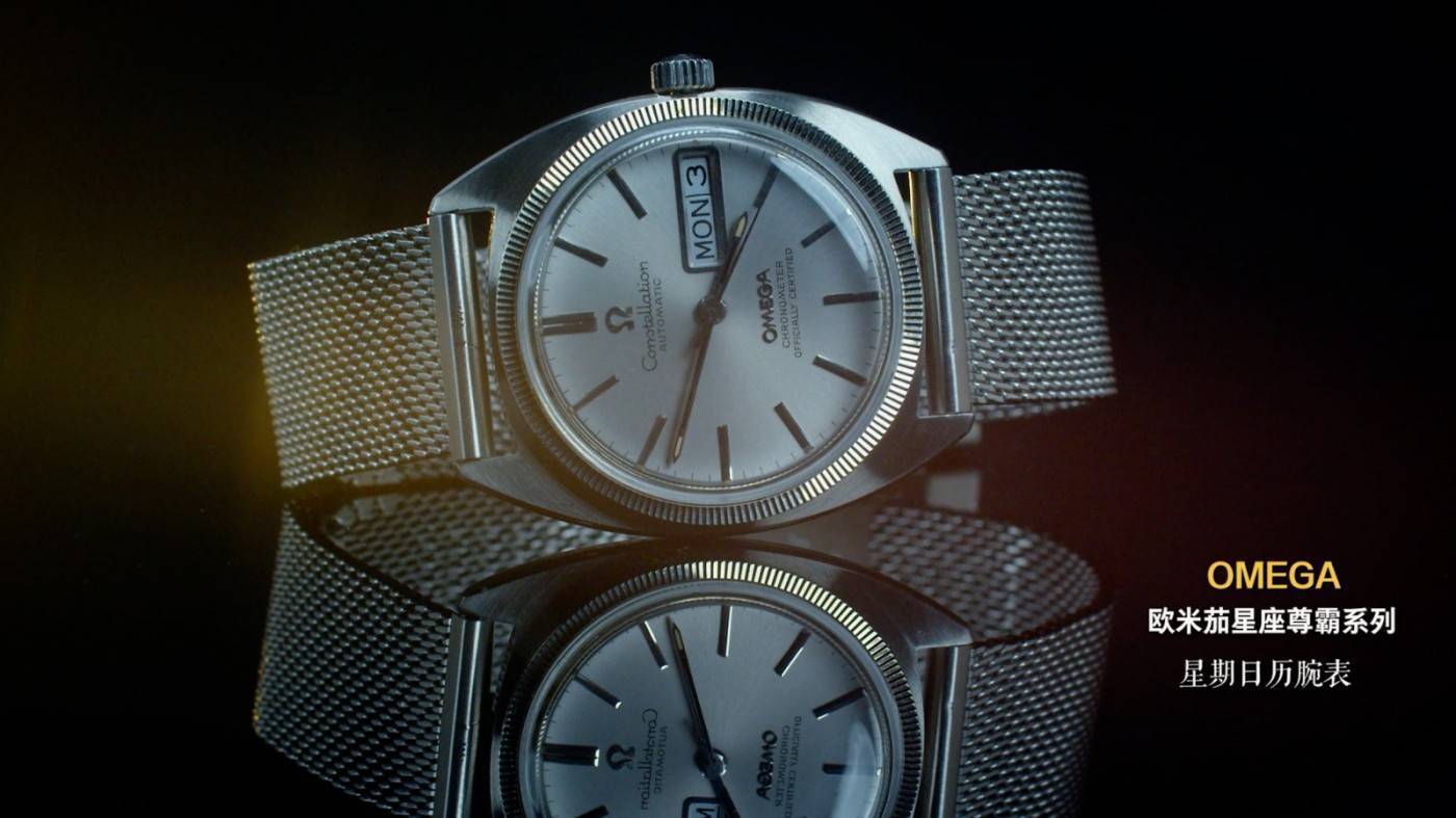 最后来个彩蛋,这是一枚上世纪60年代的欧米茄星座尊霸系列腕表。它拥有非常漂亮的壳型,因为这是尊达大师的作品。而在背后你也能看到,它的表底盖上有当年天文台竞赛的标识,还有非常漂亮的机芯。