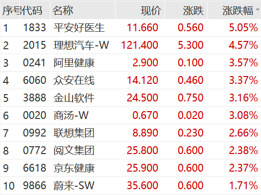港股市场早间同样低开恒生指数跌0.44%,恒生国企跌0.54%,恒生科技跌0.67%。上午港股盘中拉升,截至发稿三大指数均已翻红,恒生科技涨幅扩大至1% ;平安好医生、理想汽车、京东健康等领涨恒生科技。