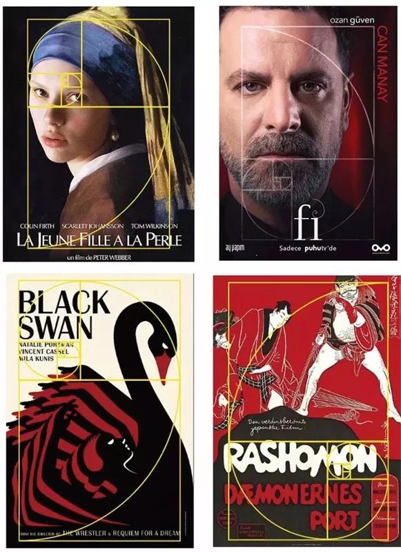 生活中我们经常会听到的黄金分割构图法,那么它到底是什么样的一种原理方法?又是如何运用到设计中去的?下面跟着青藤酱一起来了解一下吧! 黄金分割构图法:是一种由古希腊人发明的几何学公式,遵循这一规则的构图形式被认为是和谐的,在欣赏一件形象作品时这一规则的意义在于提供了一条被合理分割的几何线段。黄金分割构图法的基本理论来自于黄金比例 ── 1 : 1.618。 黄金分割构图法运用到海报设计、网页设计、绘画、服装设计等领域。在摄影中也经常会引入黄金分割比例,可以让照片感觉更自然、舒适,更能吸引观赏者,给人一种赏心悦目的视觉感受。下面我们来赏析一些运用黄金分割法的优秀案例。 1、在海报中的应用 从上面的海报中我们可以了解到:在上面的两张人物类型的海报中,均使用了黄金分割点的技巧,通过分割螺旋法的设计技巧,对于人物的突出主体地位进行展现,这样观众在浏览时就能够快速抓住要点,海报的主题也是显而易见的。